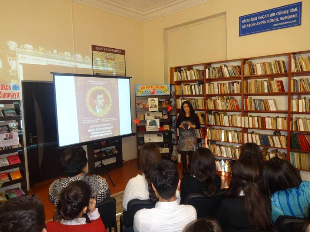 Sumqayıt şəhər Mərkəzi Uşaq Kitabxanasında Mehdi Hüseynzadənin anadan olmasının 100 illik yubileyi münasibətilə “Şanlı ömrün əfsanəsi” adlı tədbir keçirilib. Tədbiri giriş sözü ilə açan kitabxananın multimedia mütəxəssisi Leyla Mahmudova Mehdi Hüseynzadənin İkinci Dünya müharibəsi illərində doğma torpaqdan uzaqlarda, Adriatik dənizi sahillərində faşizmə qarşı mübarizədə apardığı çoxsaylı uğurlu kəşfiyyat əməliyyatları və nümayiş etdirdiyi misilsiz hərbi şücaətlər, kitabxanaçı Sücayət Əliyeva qəhramanın şərəfli həyat yolu haqqında məlumat verib. Sonra tədbir iştirakçıları qəhrəman azərbaycanlı partizanın həyatından bəhs edən sənədli filmi izləyiblər. Sonda Leyla Mahmudova Azərbaycanın qəhrəman oğlu Mehdi Hüseynzadənin keçdiyi ömür yolu, uğurlu döyüş əməliyyatlarından bəhs edən kitablar və dövrü mətbuat materiallarından ibarət sərgidən xülasə verib.